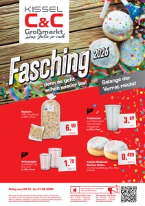 Gültig vom 02.01. bis 21.02.2026 Keine Angebote mehr verpassen. Jetzt App downloaden! Bitte zeigen Sie bei jedem Besuch Ihren Kundenausweis unaufgefordert am Einlass vor. Wir sind gesetzlich gehalten, Sie nur für Ihren gewerblichen Bedarf zu beliefern. Alle Preise zuzüglich der gesetzlichen Mehrwertsteuer. Alle Angebote sind freibleibend solange der Vorrat reicht. Öffnungszeiten C&C Landau: Mo. – Fr. 8.00 – 19.00 Uhr, Samstag 8.00 – 14.00 Uhr (durchgehend geöffnet) Öffnungszeiten C&C Bingen: Mo. – Fr. 8.00 – 17.00 Uhr, Samstag 8.00 – 13.00 Uhr (durchgehend geöffnet) Solange der Vorrat reicht! 2026 Popcorn 100 x 8 g Beutel je 800 g Pack Schnapsglas aus Plastik, klar 2 cl/4 cl je 40er Pack ... denn es geht schon wieder los! Fasching 683280 6.99 929073 1.79 3371 3.89 886734 0.499 Trinkbecher aus Polypropylen, Füllinhalt 0,5 l, transparent je 50er Pack Cuisine Noblesse Berliner Ballen mit Vierfruchtfüllung, 48 x 72 g je Stück