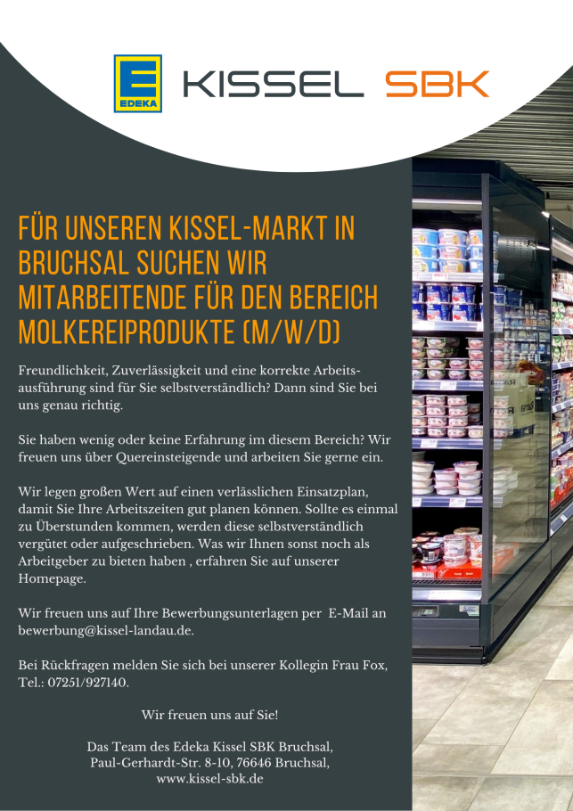 Für unseren Kissel-Markt in Bruchsal